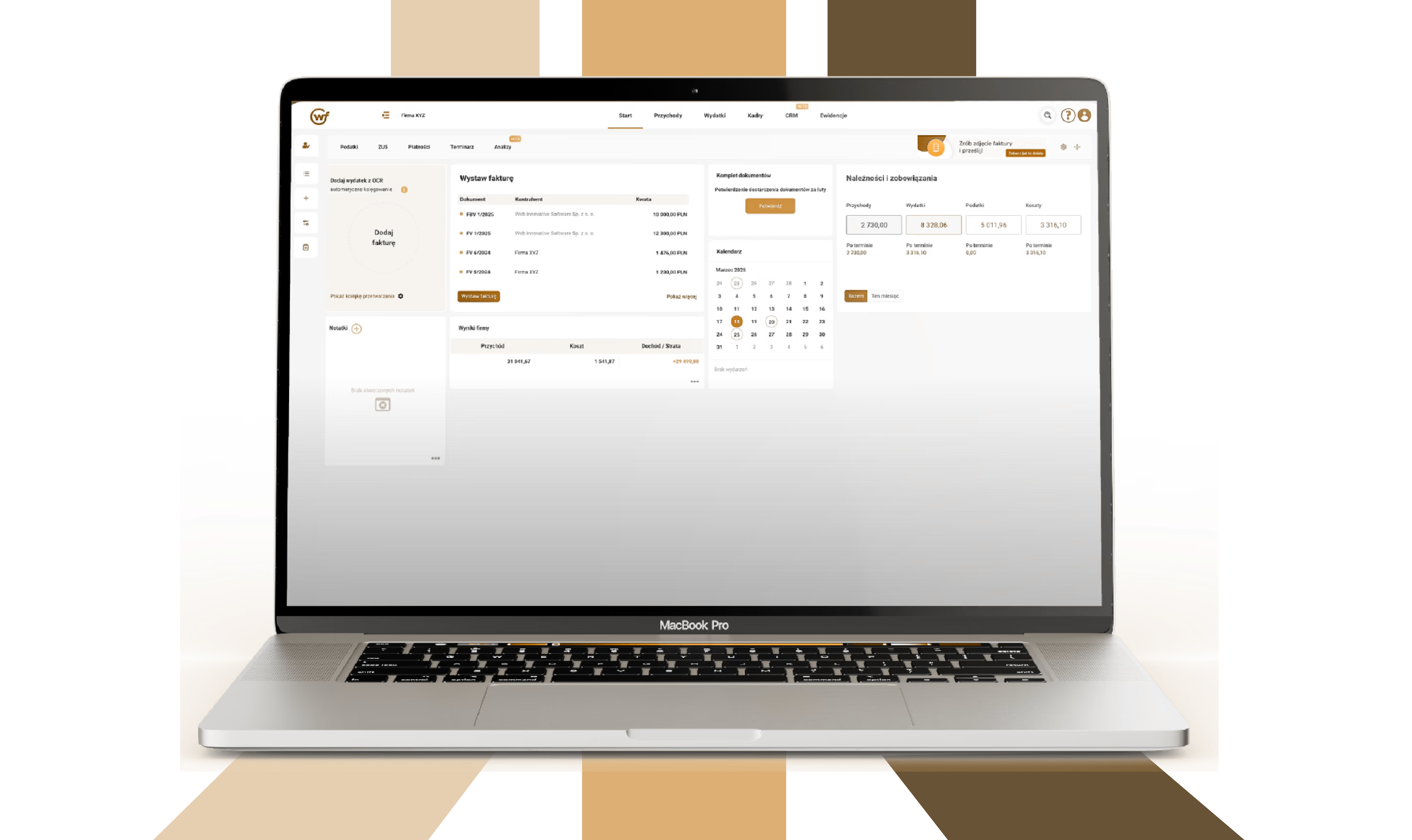 masz stały podgląd do przychodów, kosztów i zysków firmy.